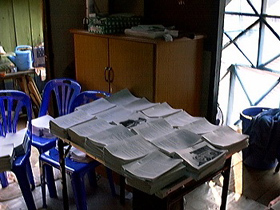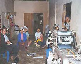 We have replaced this press. We now have two smaller presses that we are setting up, and we also print with other press companies when we need to and the price is right. Unfortunately the press viewed below made only a couple printings, which paid for it, but destroyed too much paper to continue on. Still quite joyous are the memories of what we did in a steamy jungle house with that press in an Akha village at the height of all the killings during the US Drug War in Thailand. Thai soldiers were shocked that their brutal killings showed up in books in the very same villages, full of pictures of the people they were abusing. Printing is central to our work but we struggle to publish books under very difficult conditions.