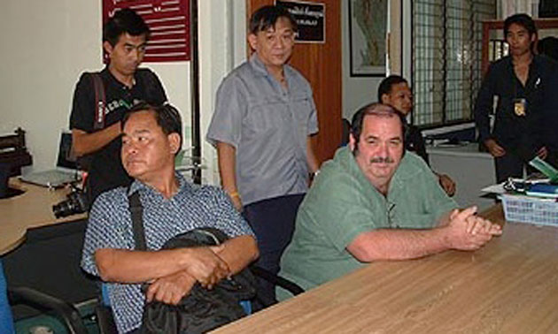 Where is the US Embassy enforcing this as a case to take Mr. Moss Morse back to the US for sex abuse charges? Are missionaries exempt from prosecution? Especially old family name missionaries? Like Vern McCauley of Eden House Children's Home (YWAM Chiangrai) said (on video in the film "Prisoners of a White God") when asked about the rape of an Akha girl by a Missionary: "We wouldn't want to talk about that, it would give missionaries a bad name." How many cases will there have to be of children being raped before missionaries in Thailand are no longer immune? These phaedophiles go where there are children, where they can have control, and that means missions that specialize in setting it all up by taking the Akha children away from their families. There needs to be a bounty on these missionaries, it needs to be made unmistakably clear, till their knees are pounding together, that the best thing they can do while they are still alive is get on a plane and get the hell out of there. You can do your part by calling or emailing the US Embassy in Bangkok, and the US Consul in Chiangmai and asking about the Moss Morse case. First Story Robert Moss (seated right) and Chailong Siriwong are questioned at the headquarters of Police Bureau Region 5’s Juvenile and Women’s Protection Division.