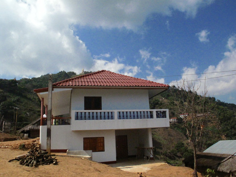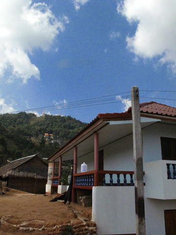 1. House view, note temple on top of hill in Doi Mae Salong, this will help you find the location of this house and village. 2. Front View, note red asbestos roofing.