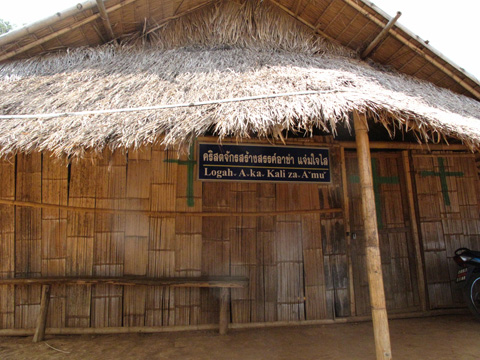 1. Ah, the "house of god". Apparently Paul and Lori are the "gods" in this village who get worshipped and "God" couldn't cut the mustard and got this bamboo bit. The message is clear to the Akha, wealth goes first to missionaries. 2.