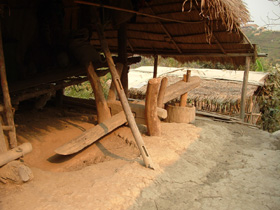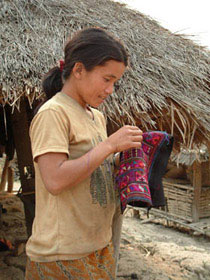Please remember to do a site search for other related documents which may not be shown here. Hua Mae Kom Bpah Mai The fires burn near the village. Normally fires are only for rotated fields, but increasingly there are fires in the area that have nothing to do with farming and look to be maliciously set, the blame being heaped on the hill tribe though indications are to the contrary. Nearby a new flower farm run by low land people develops. Increasing land pressures, demand on water, turning what used to be a pleasant pocket of hill tribe villages into nothing more than a commercial farm venture. Green orchards belie the fact that they use more than their share of water, took land away from Akha farmers and sure are no replacement for jungle. In addition they use unlimited quantities of pesticide and herbicide which poison both water and soil. A practice not used by hill tribes. The chemicals themselves come from western nations which foist them on the third world. Hua Mae Kom Bpah Mai used to have 20 families. Some families moved because they were afraid that their husbands would be arrested on flimsy charges. Others moved because the christian pastor pressured them too much. Some men and women were arrested for smoking opium. The village, obviously missing huts, down to 11 families. The families that are here work ont he commercial flower farms, exposing themselves to herbicide and pesticide spray on a daily basis. They themselves don't have enough land to farm. The government invests nothing in these villages but prosecutes them on every front. Only now, when drug prohibition has been applied across Thailand do the Akha get relief from the crossfire. Thais demanding drugs, police demanding arrest. This Akha village as so many others, shows no effect from the bird flu, no chickens lost. There is a spirit woman in the village, called a Gneeh Pah. But the pastor forbids her to work. Her son and husband were sick. They both died of fever eventually. The pastor himself had no cure for them to offer to replace her traditional doctor skills. She was left with one blind daughter and grand son. Middle aged kids are obviously missing from the village. The villagers say that when the kids return from the mission boarding schools they look down with contempt on their elders and traditional practices. They won't take part in any traditional healing ceremonies and say that the missionaries teach them that these are all evil. They also stop wearing their traditional clothes. Children grow up with no connection or sense as to who they are and where they came from. Dust blows through the village as uncertainly as the future. A few children play nearby, unaware of their resources which are being swept aside. Playing jacks with small stones. One boy has a small but potent bow with arrow darts for hunting. Law Urh is from this village. He was arrested and tortured, the army looking for drug information. His wife was taken to prison for three years when a few meth pills were found under her pillow. Loh Pah was sold a walkie talkie by another head man. That head man didn't go to jail but the police said that Loh Pah was also smoking opium, so he was sent to prison for two years. And so it goes, one family after another loosing the man or woman of the house, not enough land as it is to farm, and soon no one to farm it. The missionaries stand by pretending not to know how this all works, glutting themselves on children and donor dollars. Old Akha women sit in the shade of the road next to a hut, watching the distant fires burn themselves out. Not so different to what is happening to them as a people.